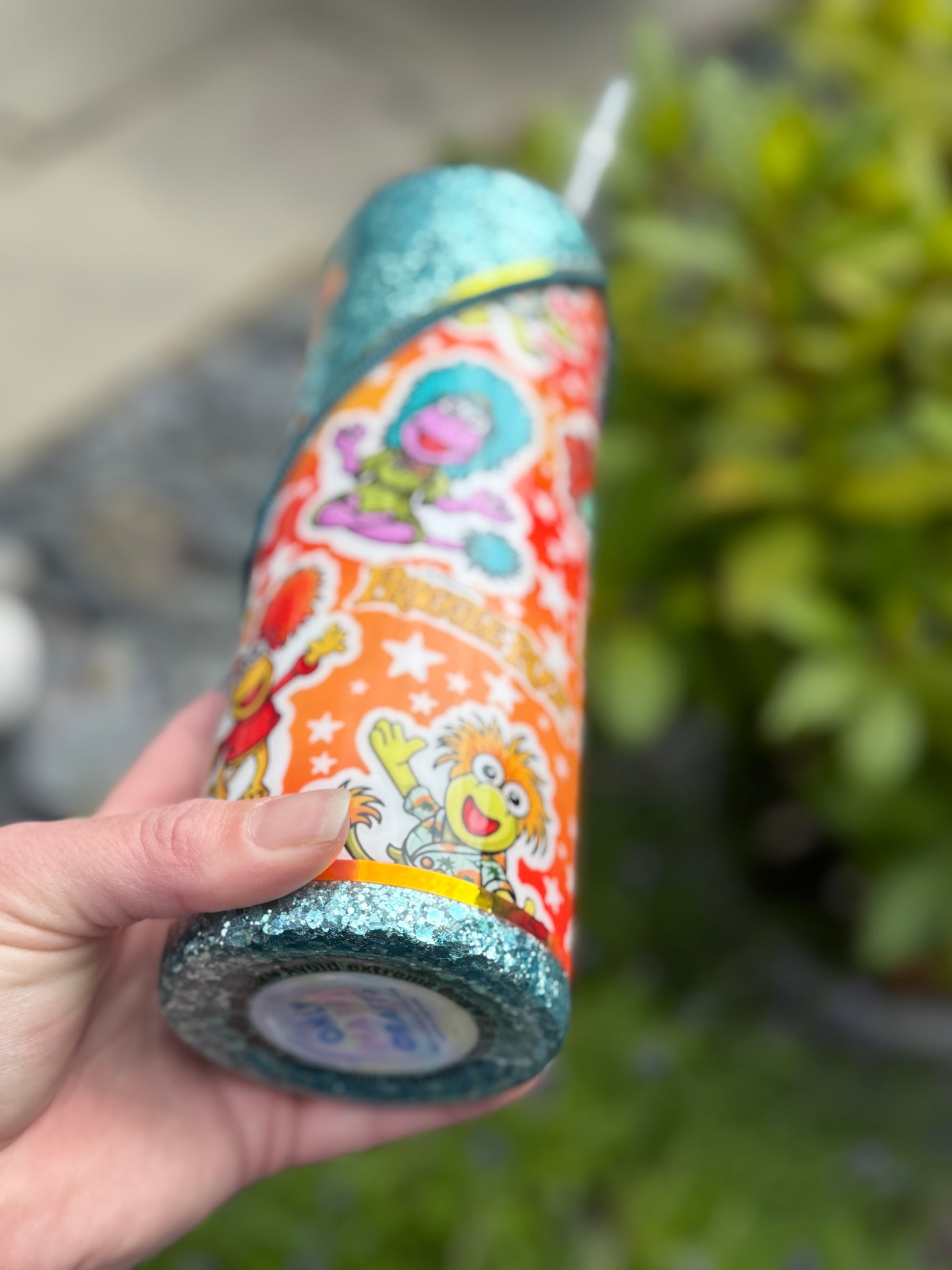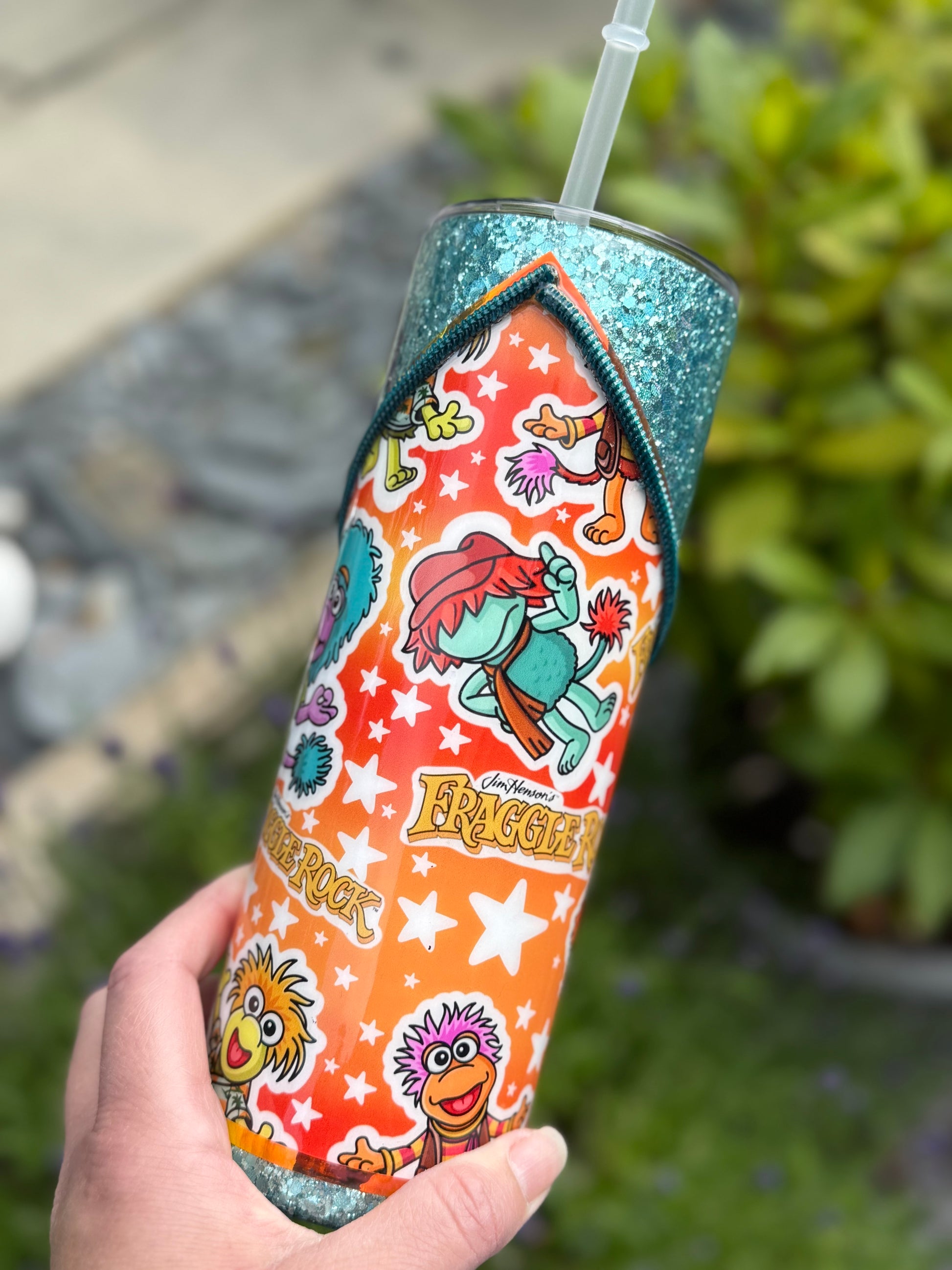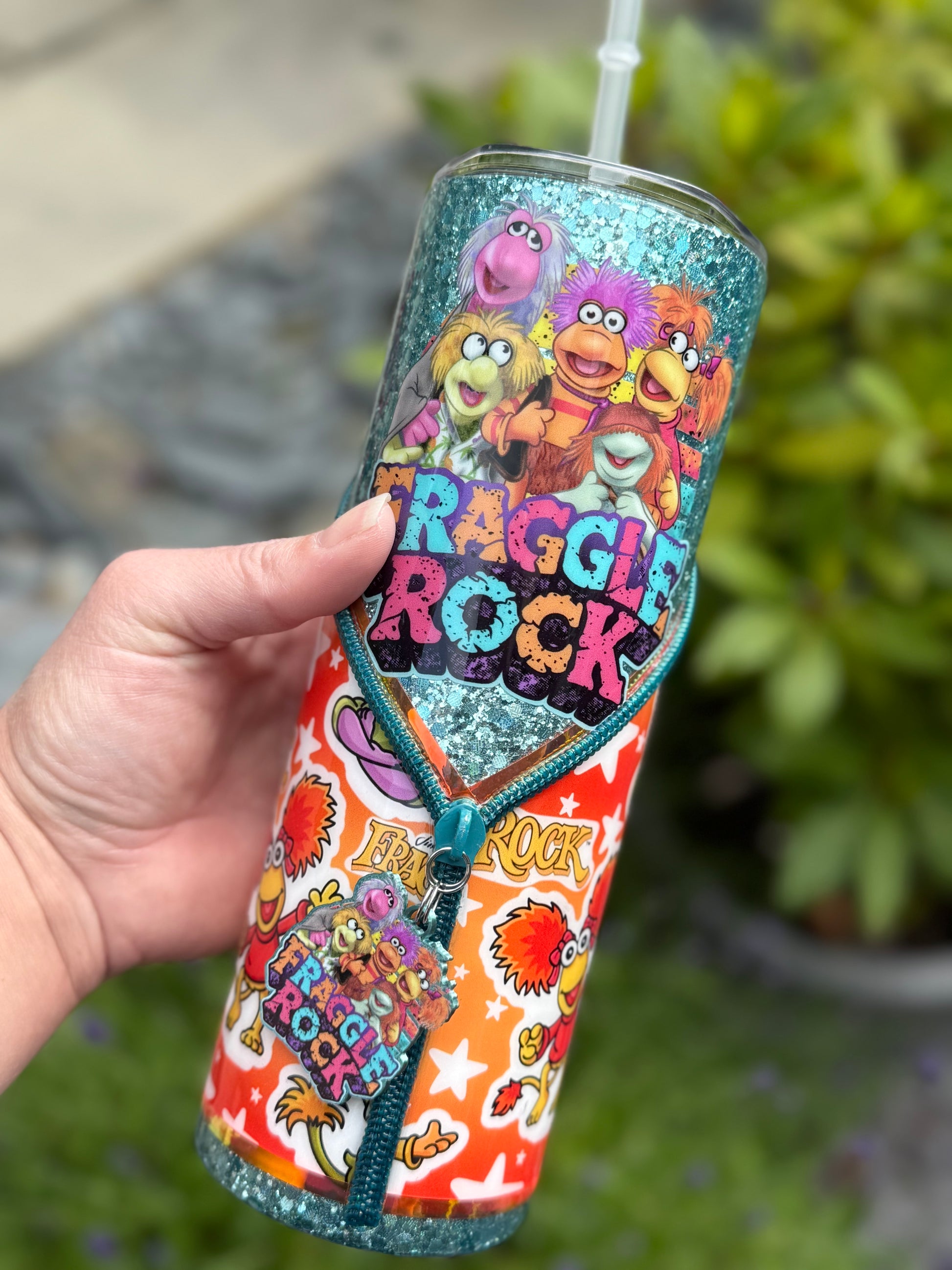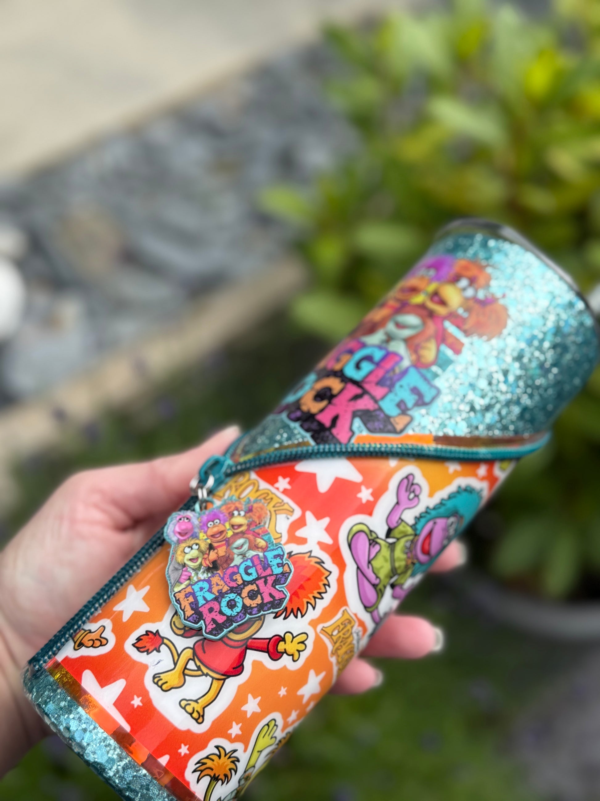 20oz stainless steel tumbler with Fraggle Rock design and stunning glitter, all sealed with Hyperion for a beautiful glass like finish. Added zip detail is for decoration purposes only.