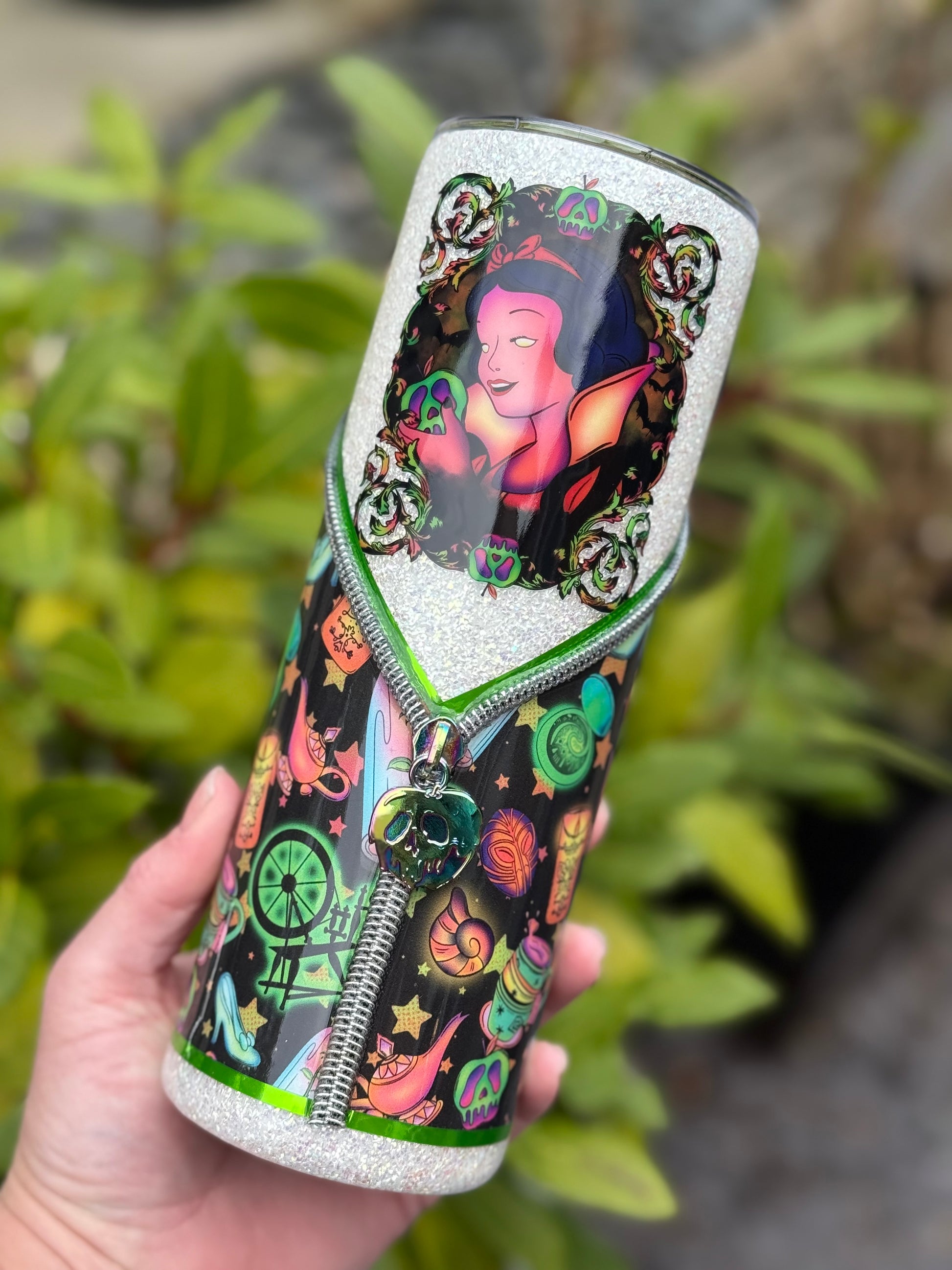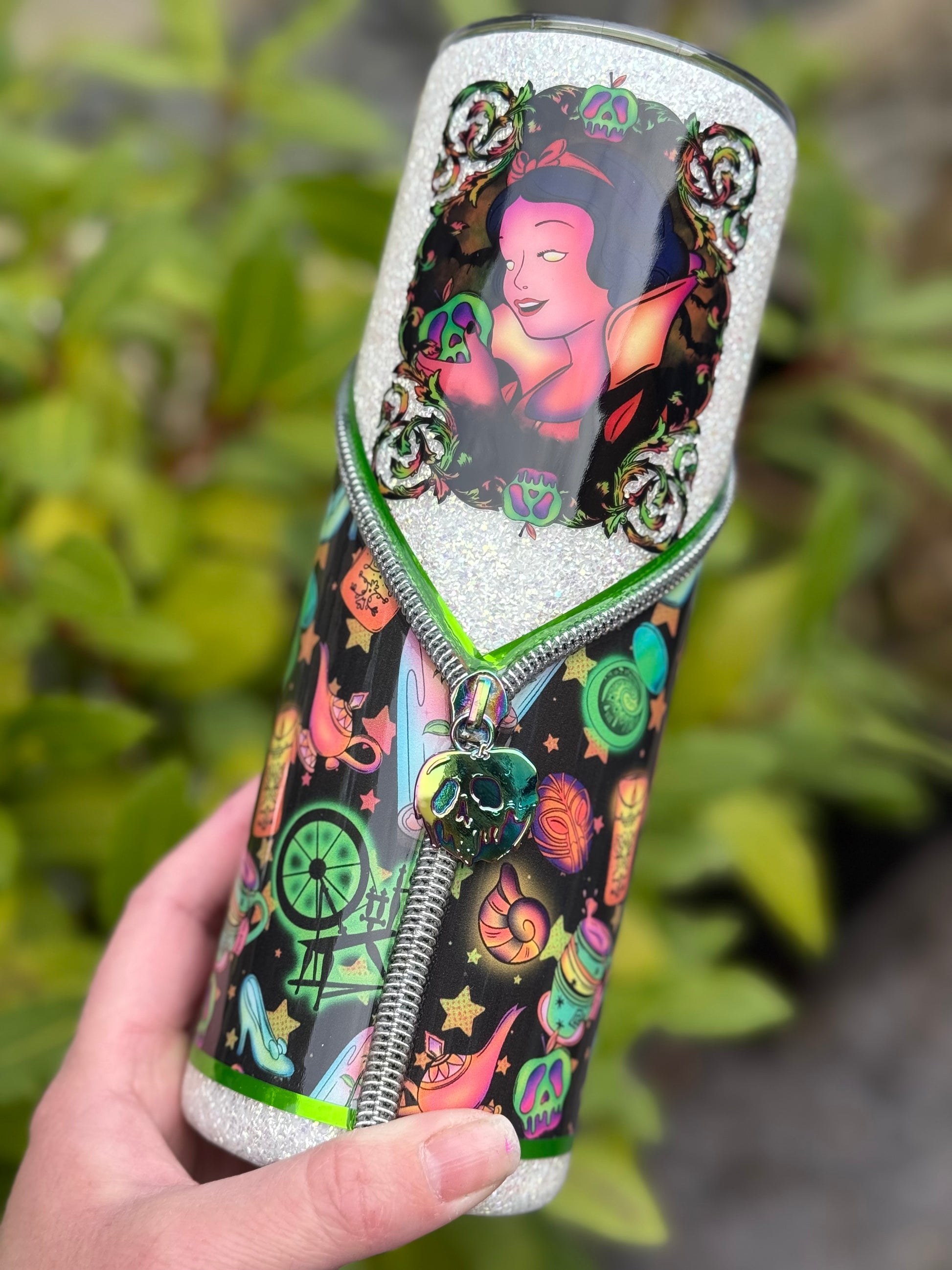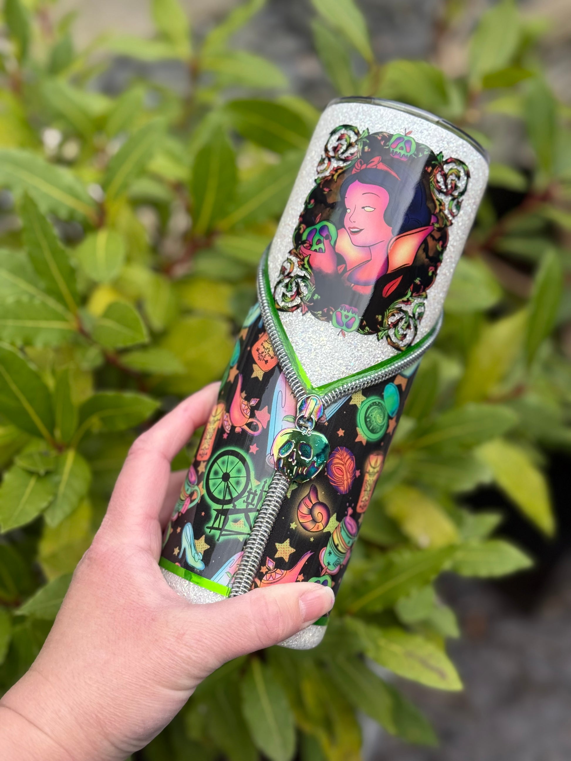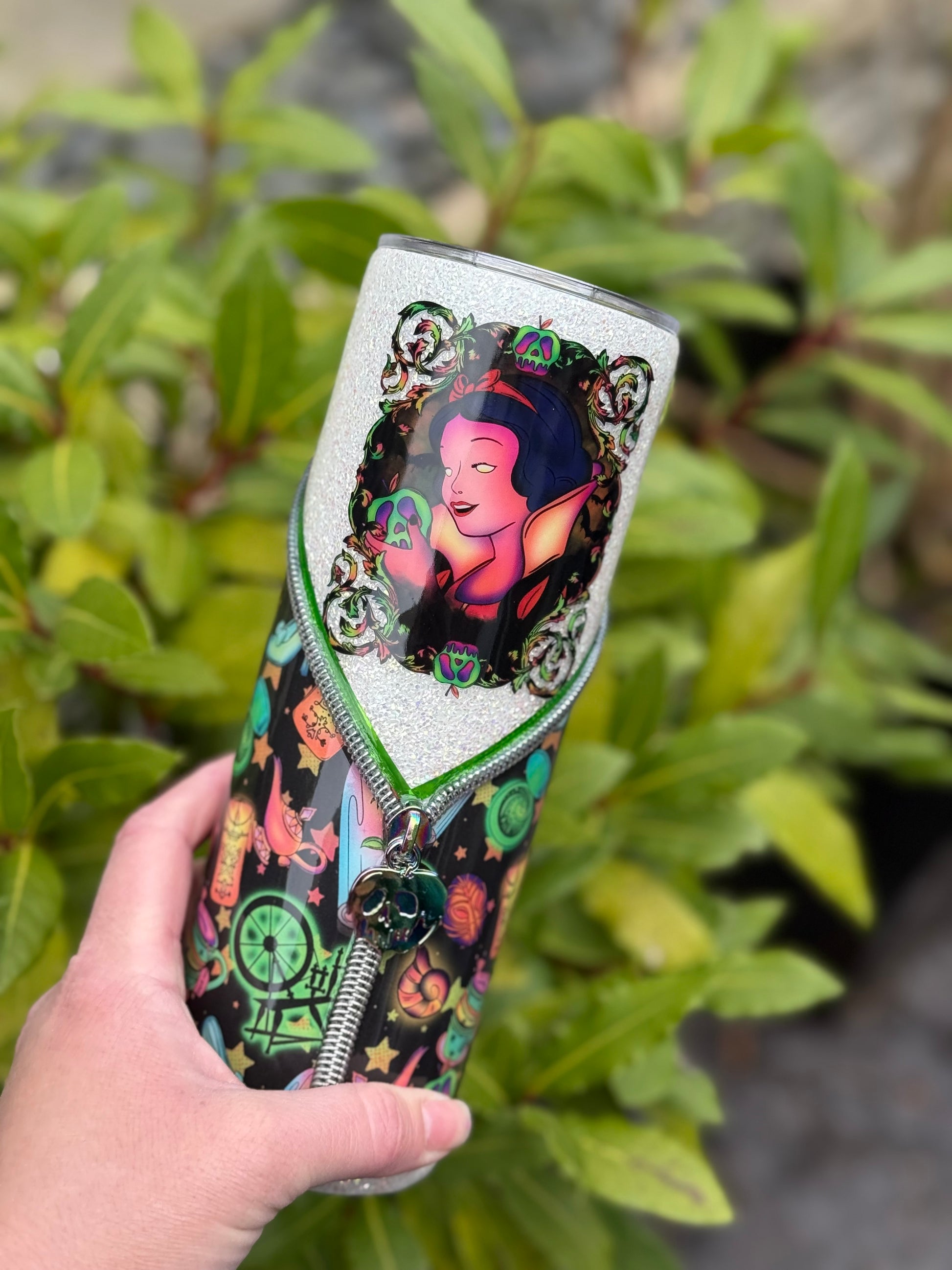 20oz stainless steel tumbler with patterned vinyl and stunning textured glitter all sealed with Hyperion for that beautiful shine.