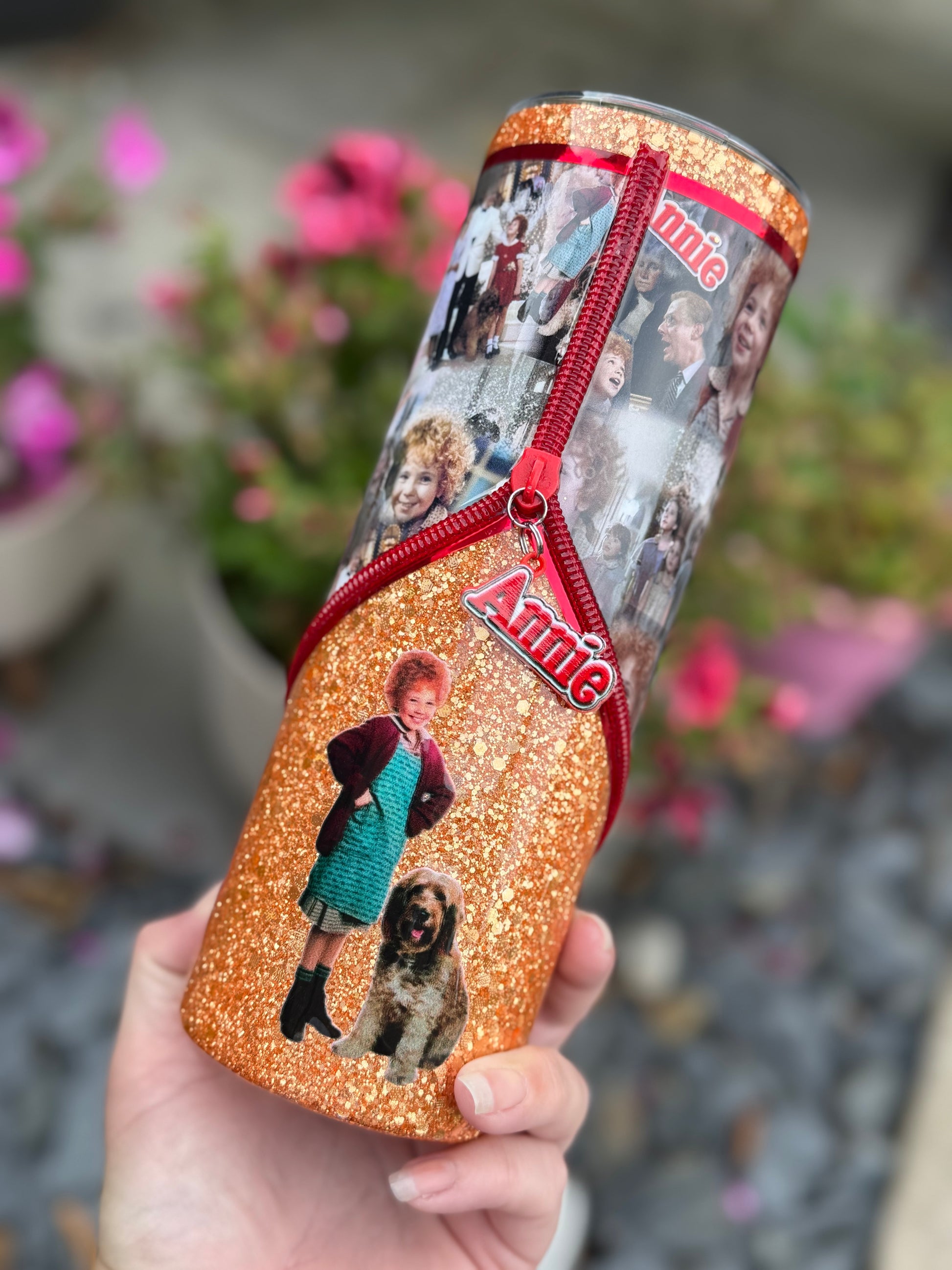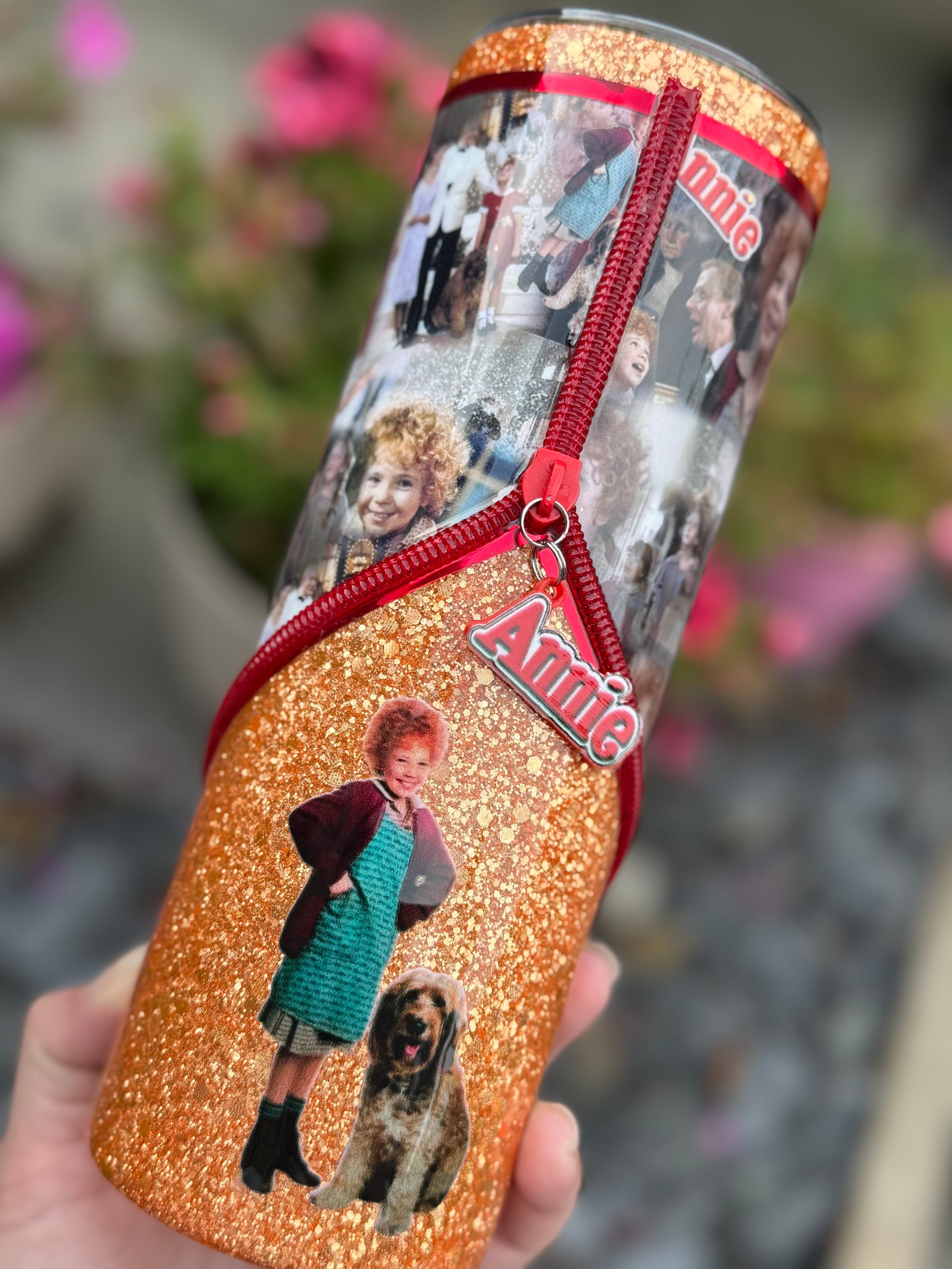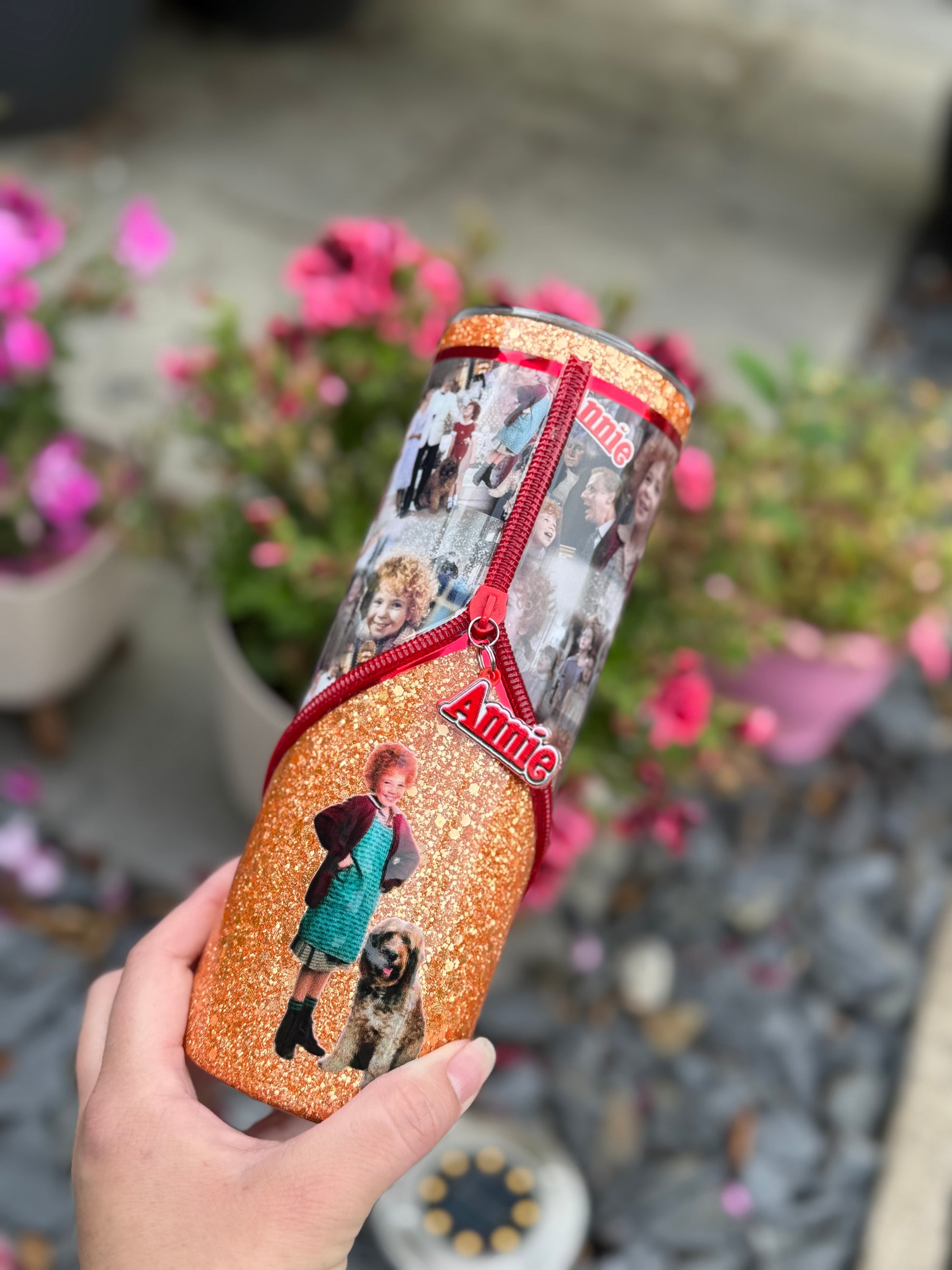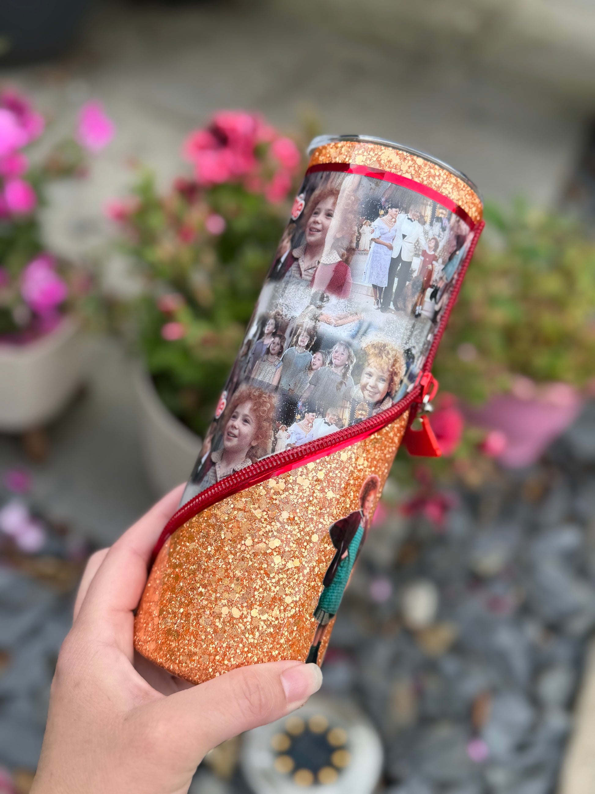 Tomorrow, Tomorrow!!!! Annie 20oz zipper tumbler with zipper detail and perfect golden glitter all sealed with Hyperion!!