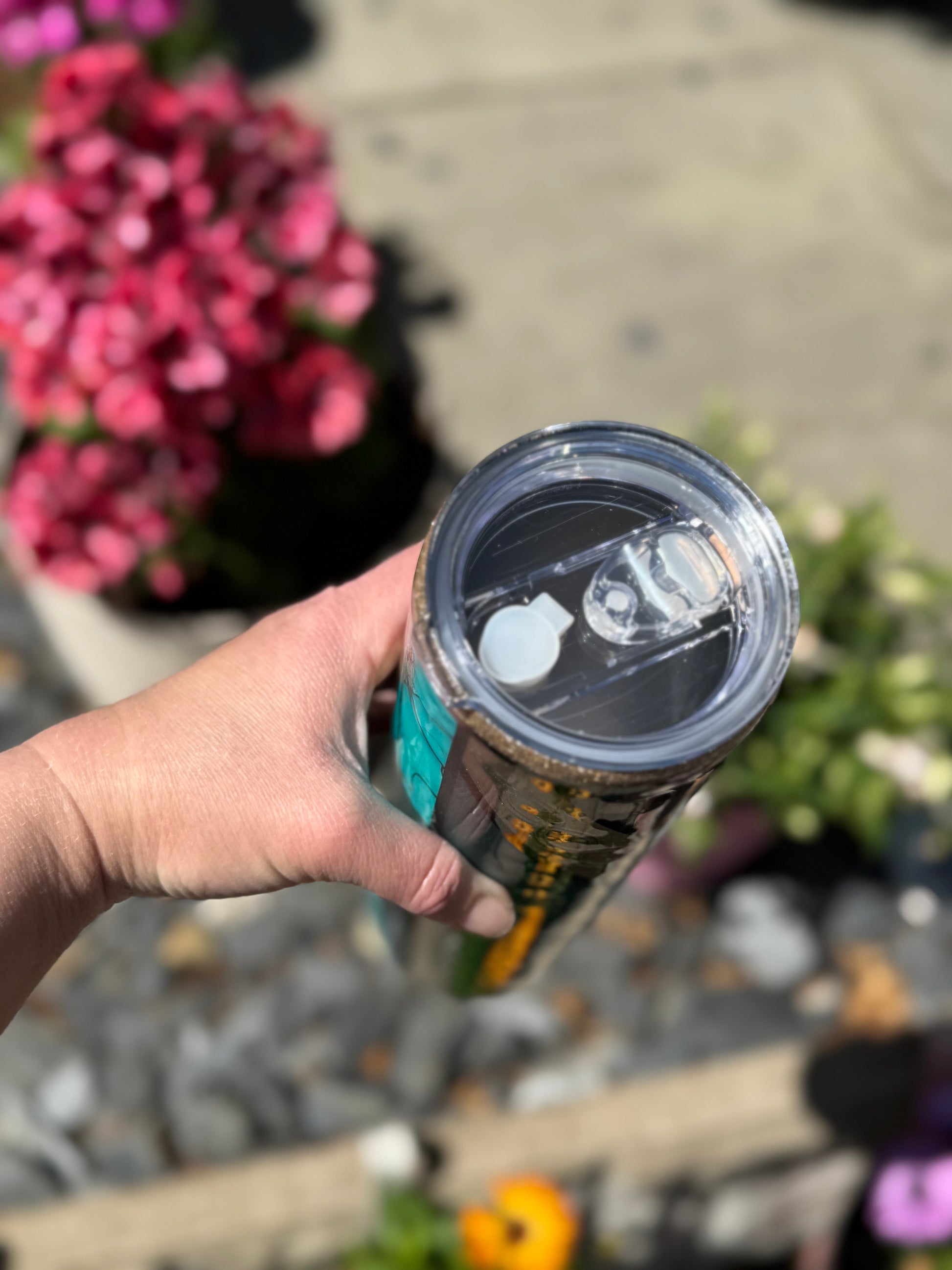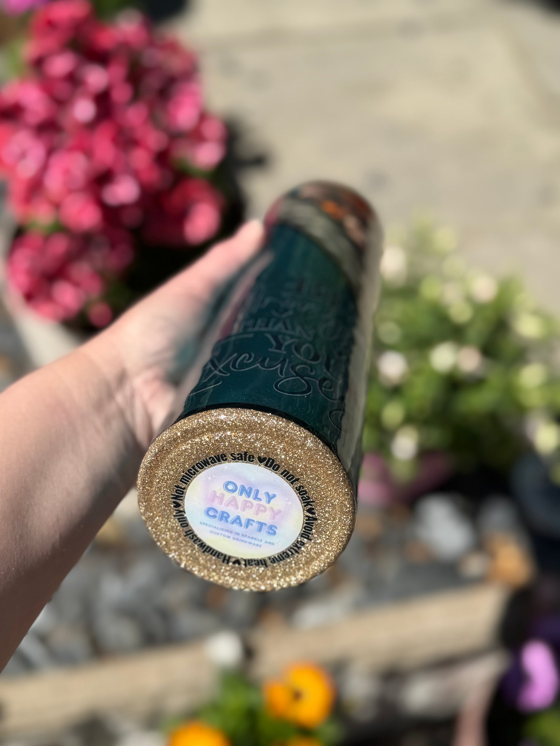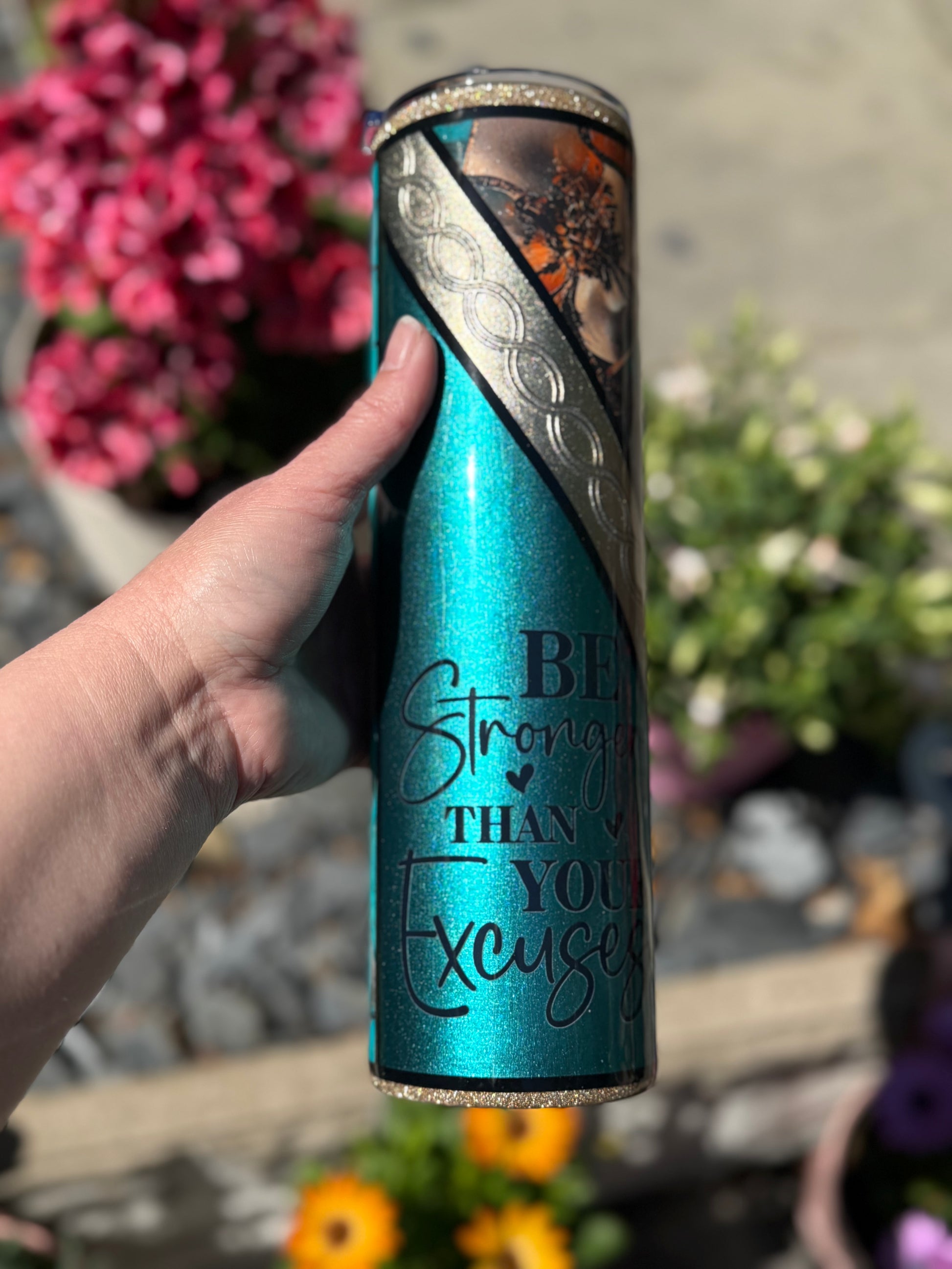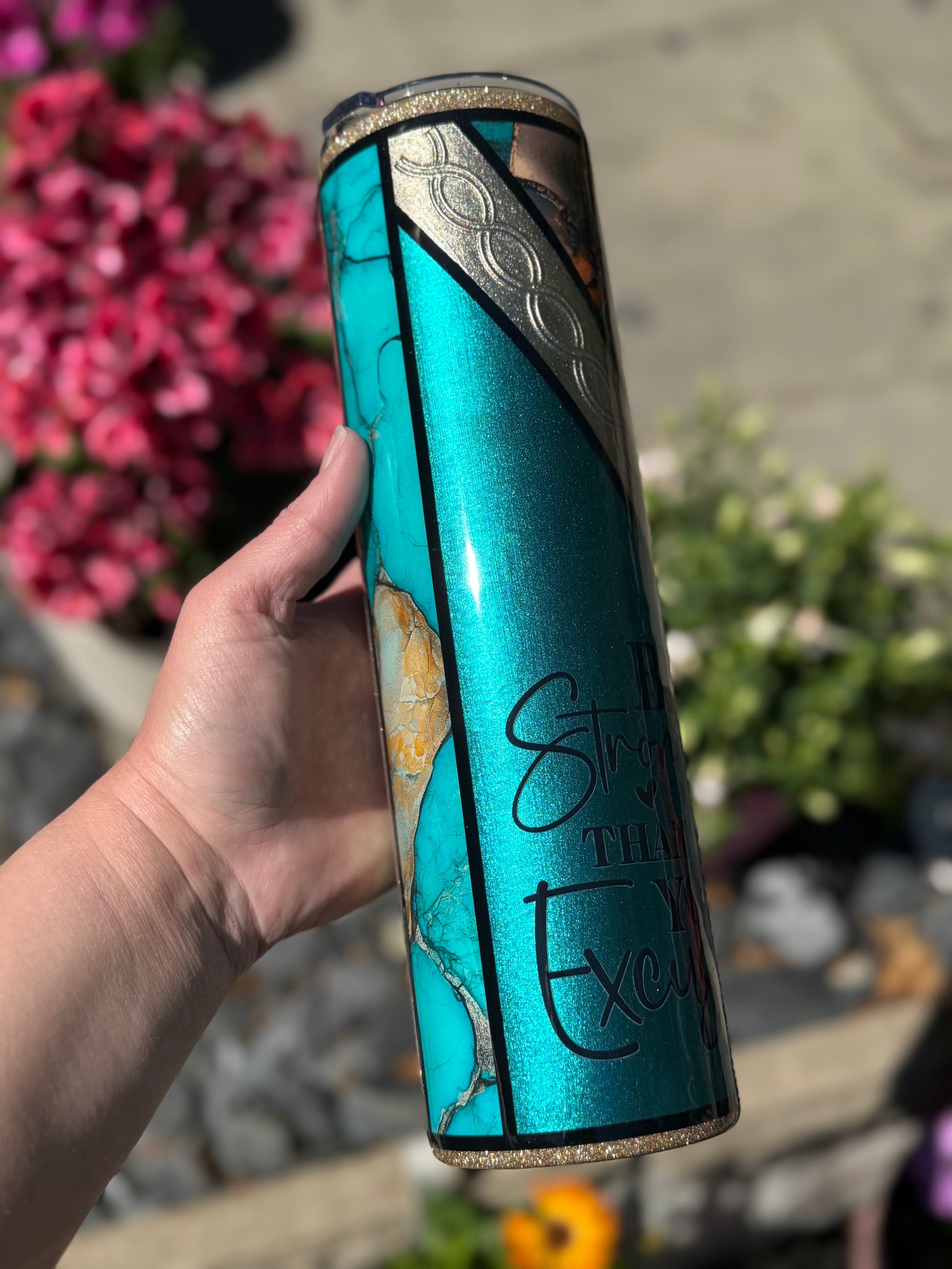32oz stainless steel tumbler with floral design and stunning mixed media accents, all sealed with Hyperion for a beautiful glass like finish.