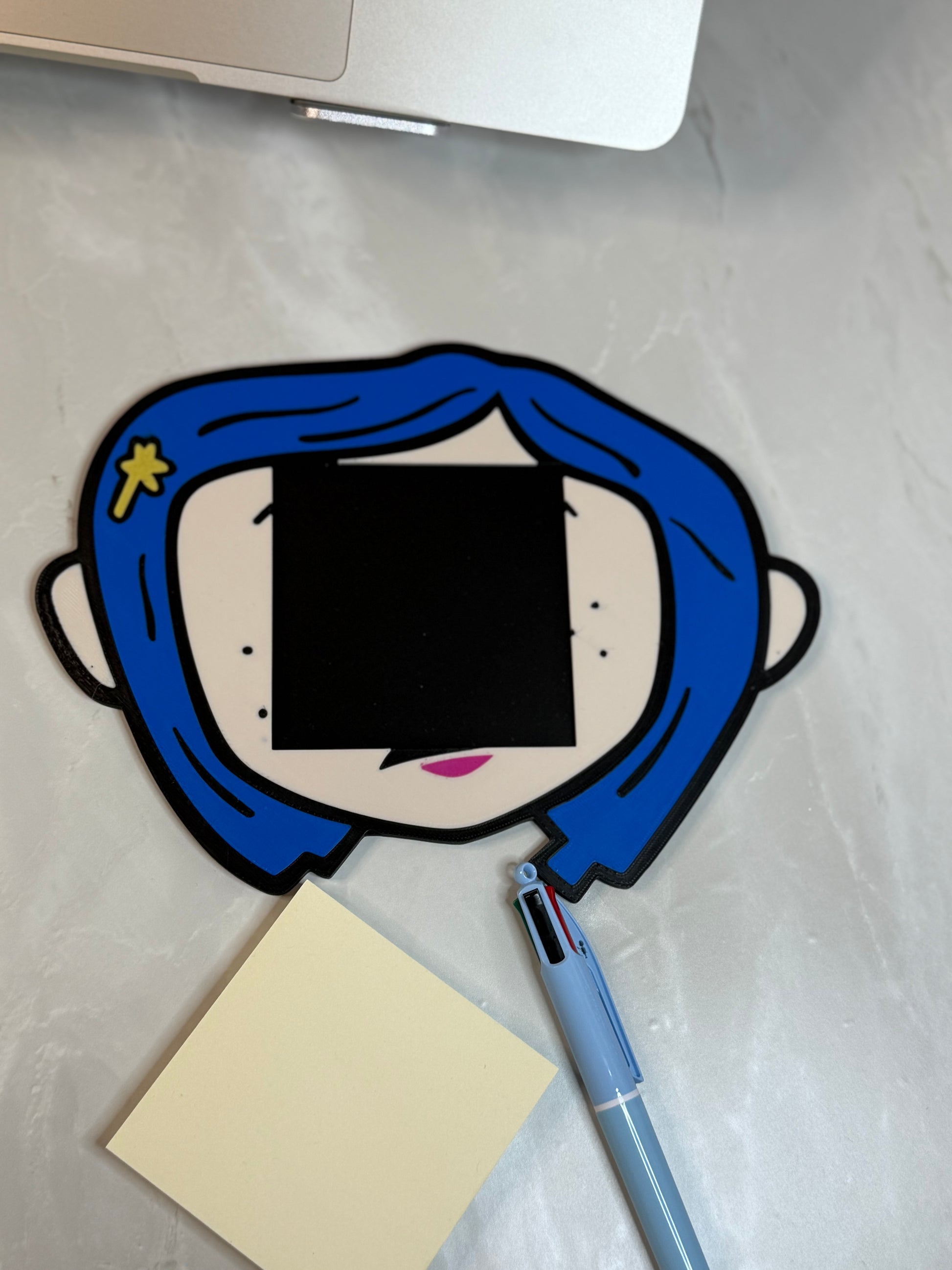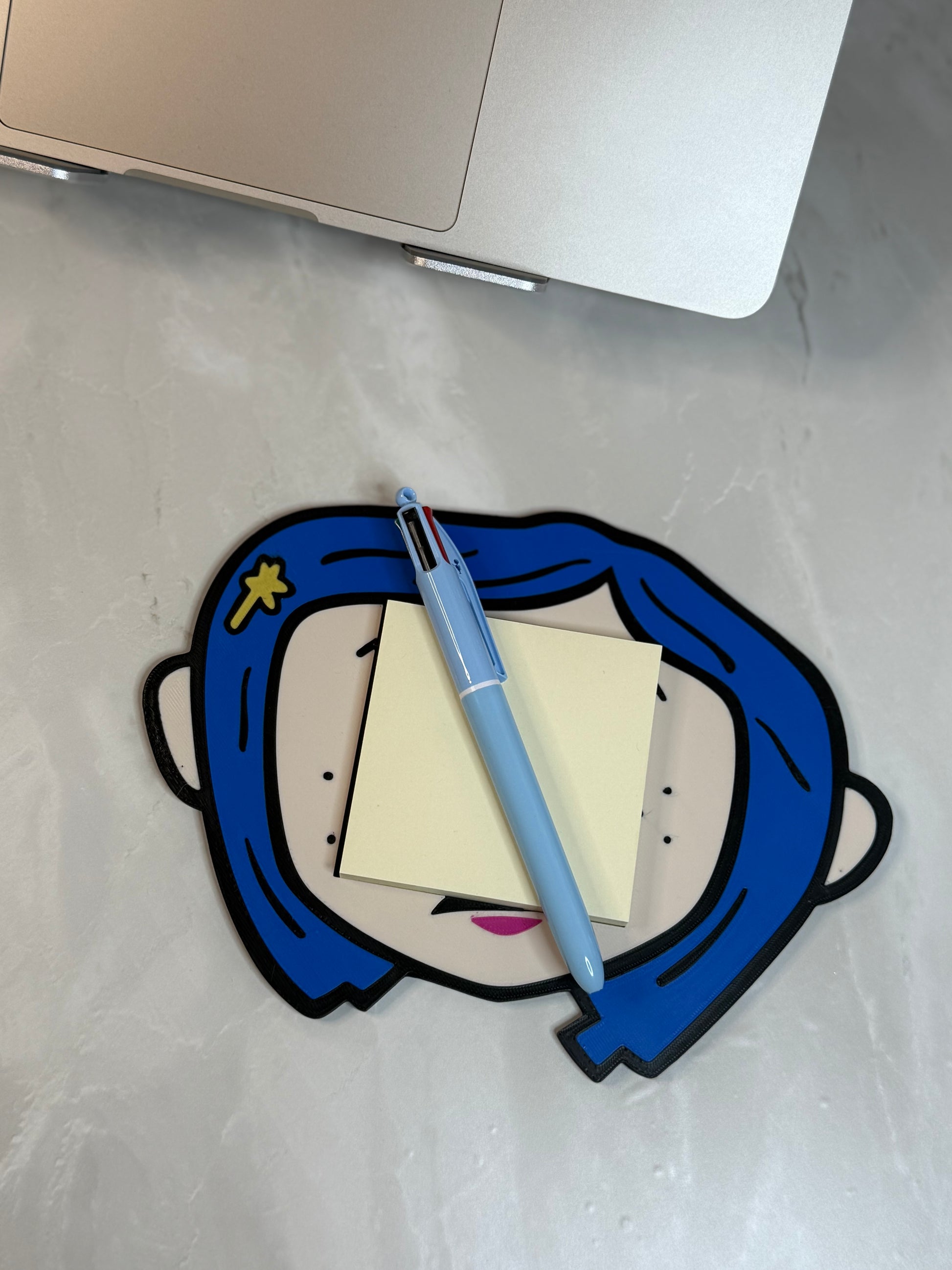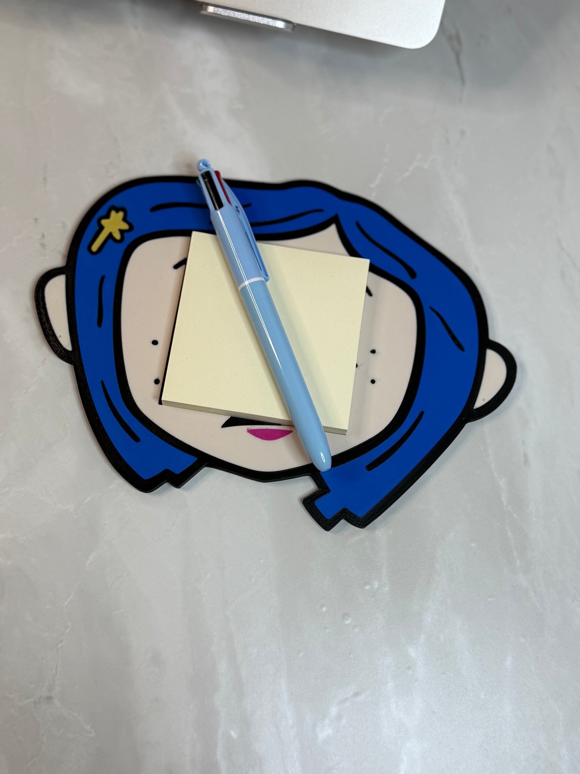 As cute as a button, Coraline 3D printed post it note holder. Perfect for keeping your desk today and adding abit of fun to your workday!!