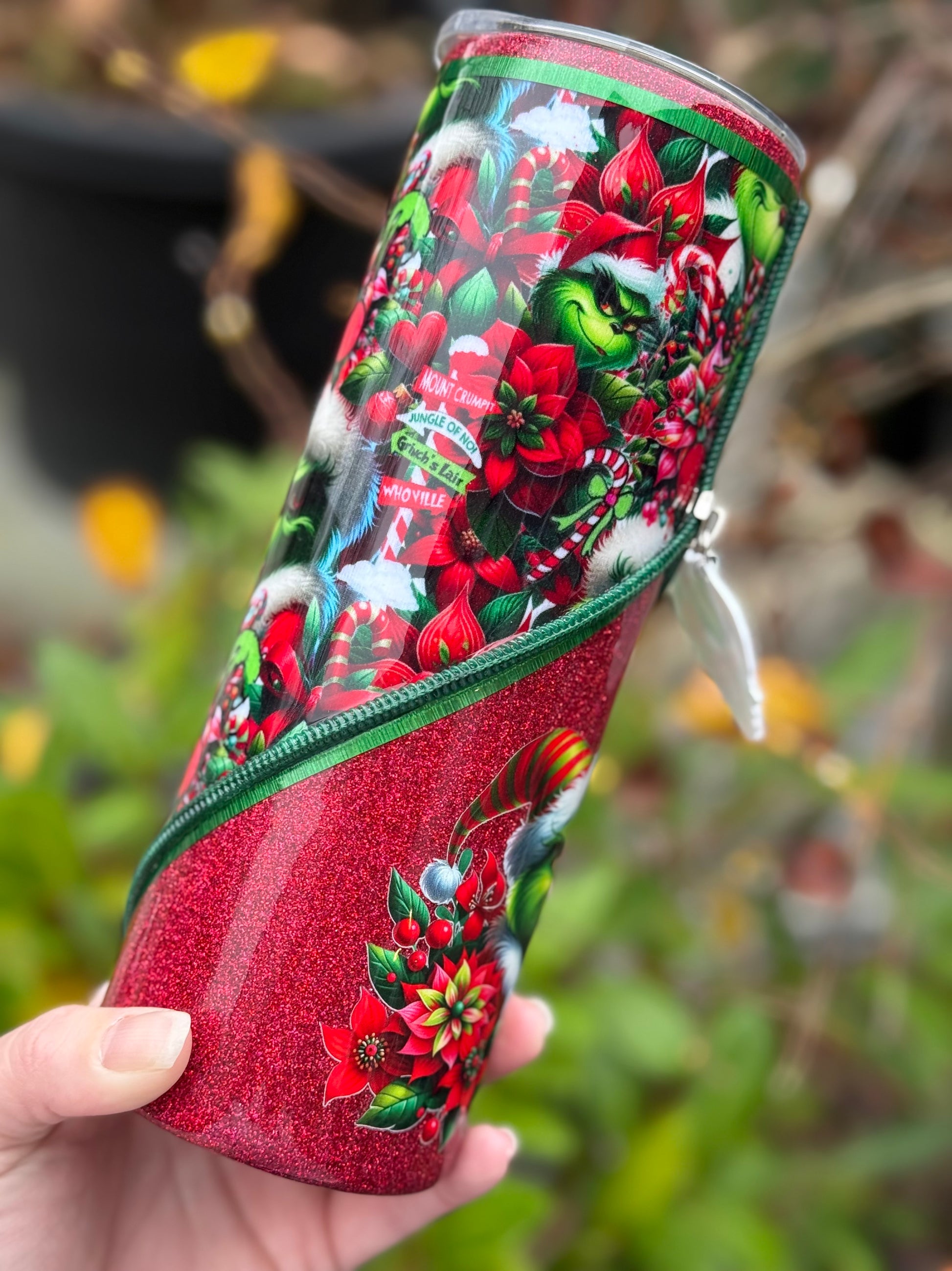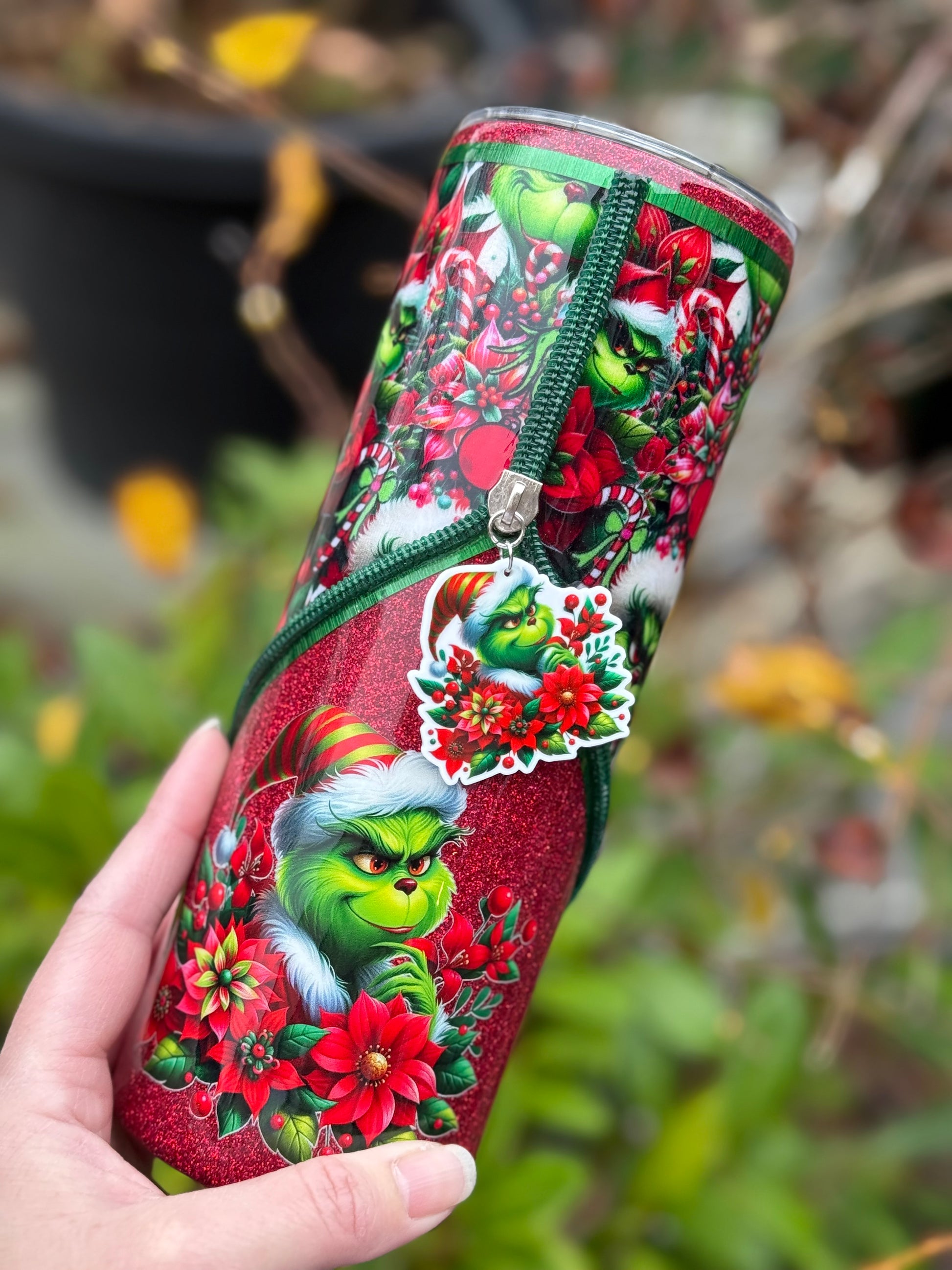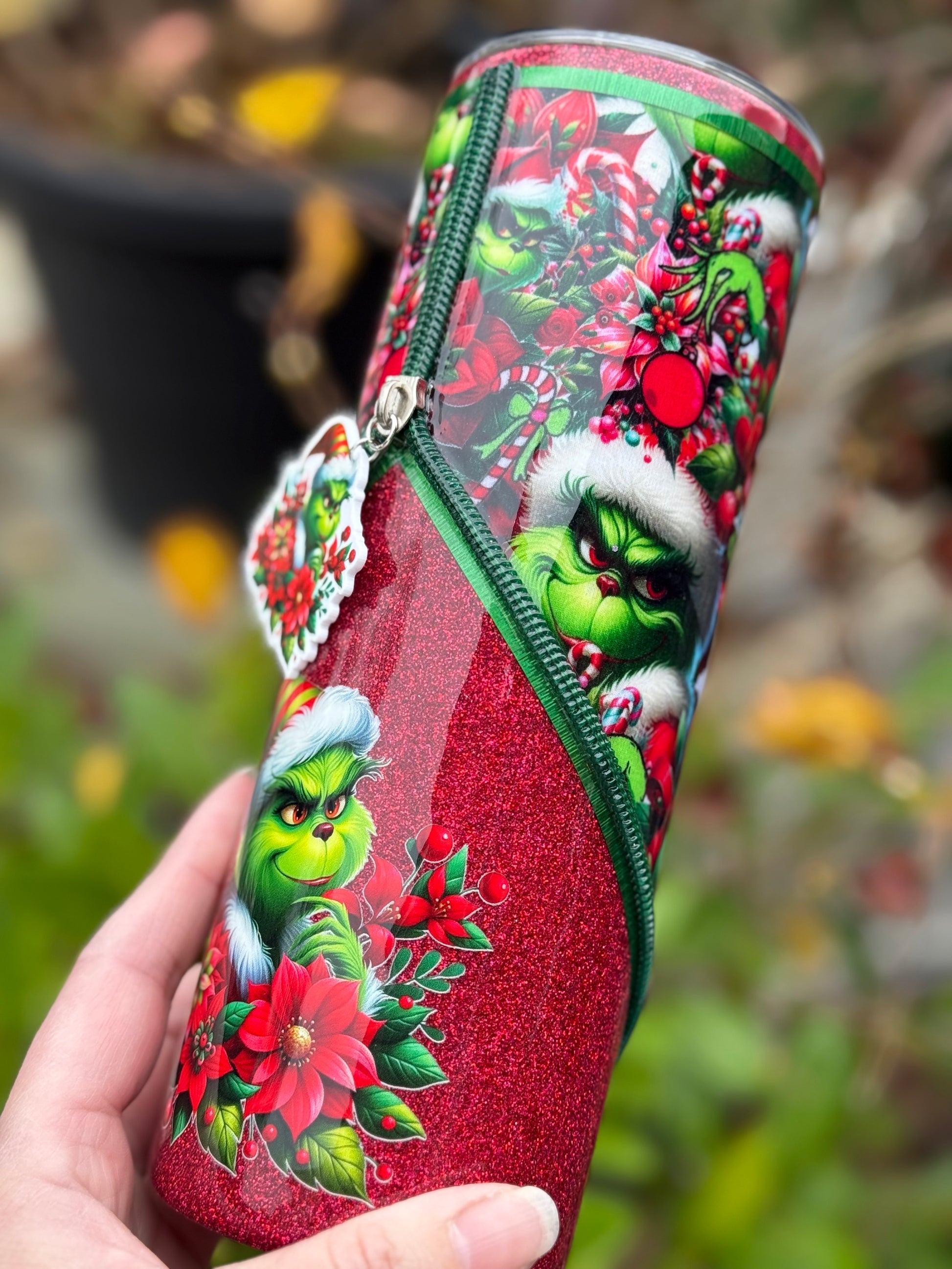 Handmade Grinch zipper tumbler