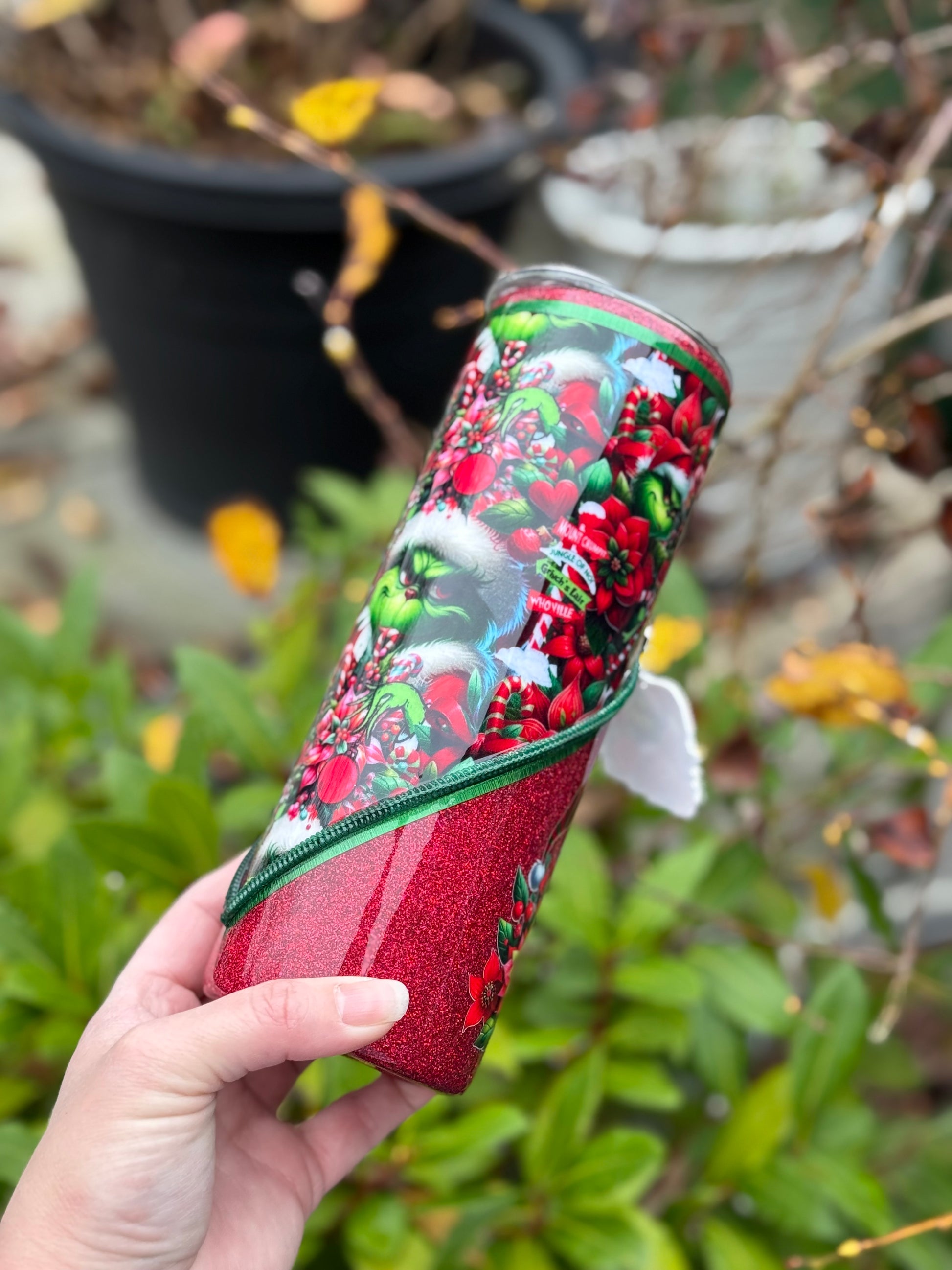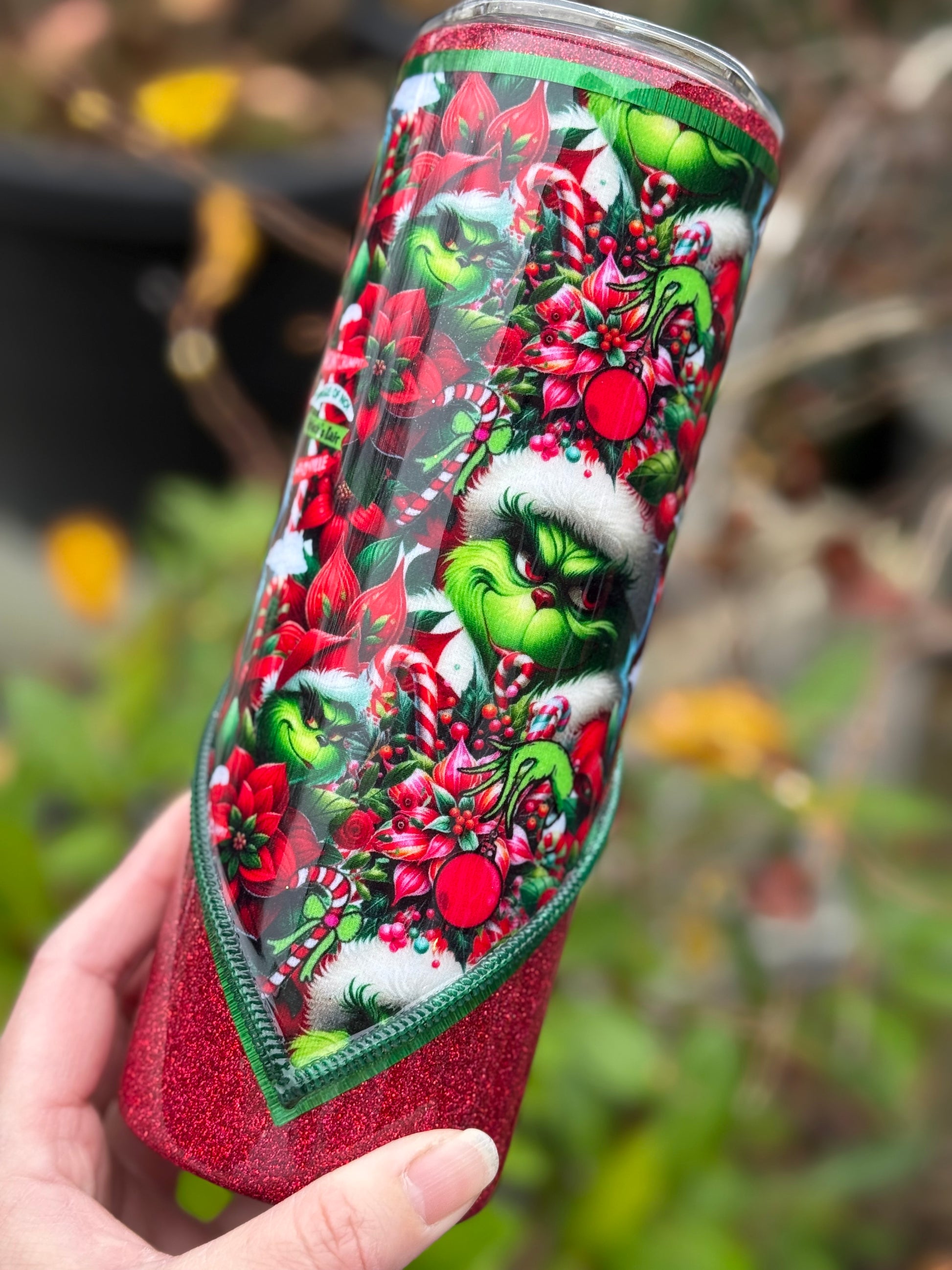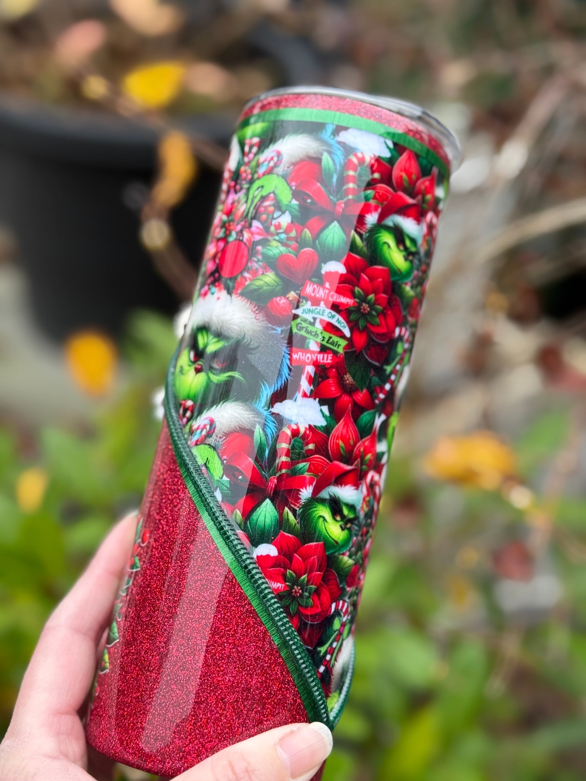 Handmade Grinch zipper tumbler