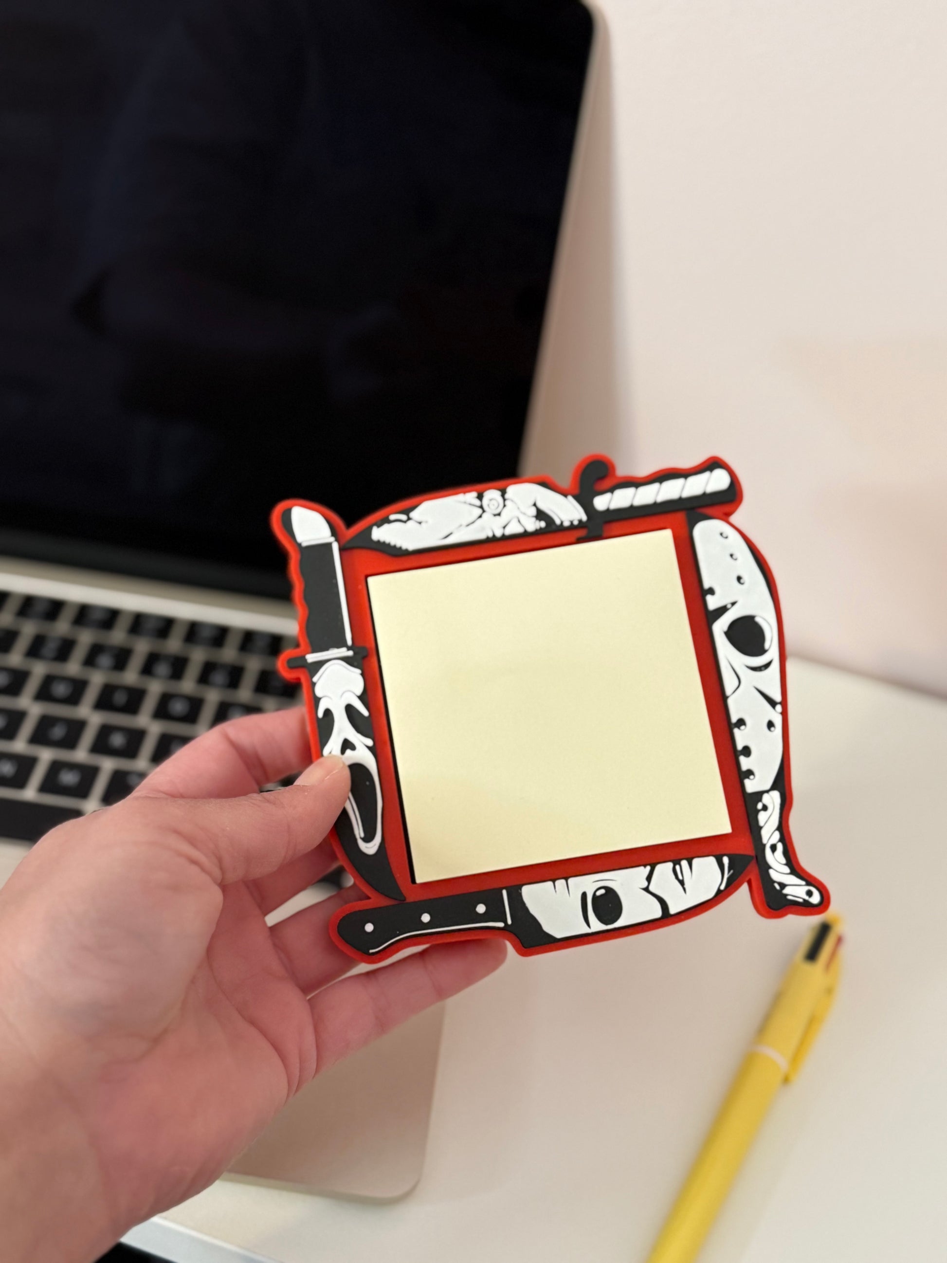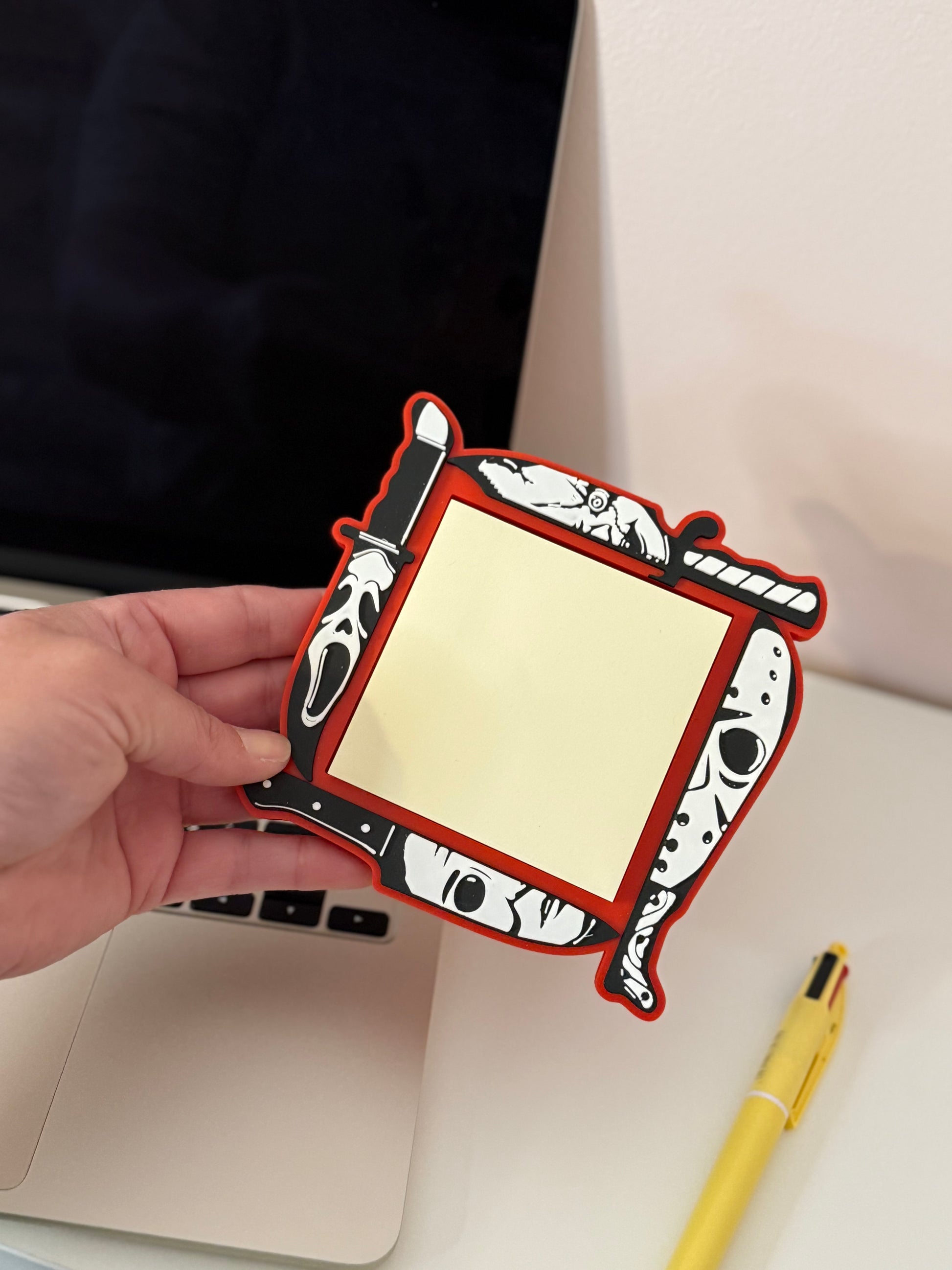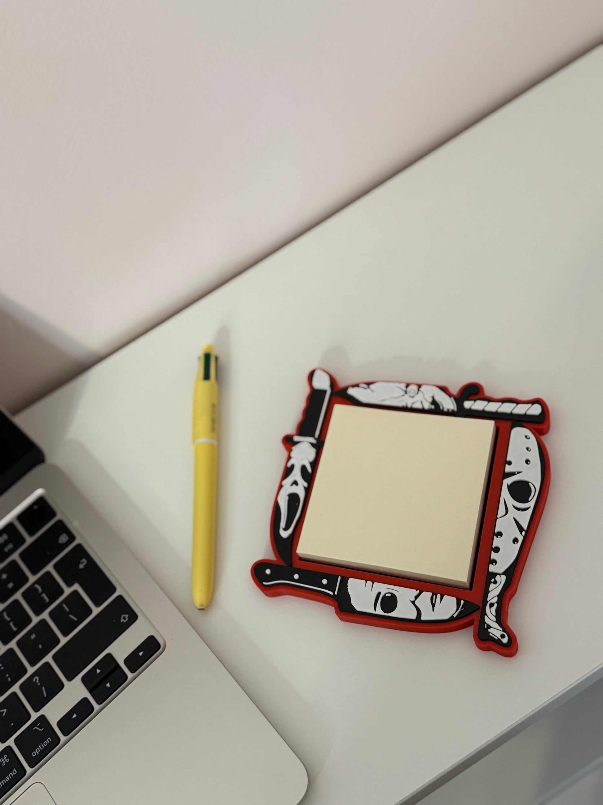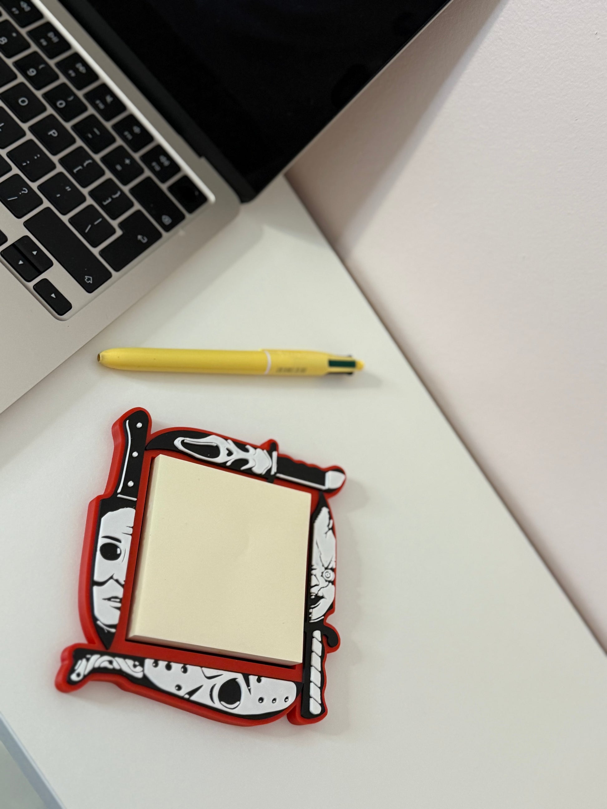 Perfect for all the slasher lovers, 3D printed post it note holder, matching pen pot also available!!
